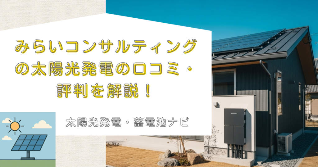 太陽光発電の導入を検討している方にとって、信頼できる業者選びは非常に重要な要素です。この記事では、みらいコンサルティングの太陽光発電サービスについて詳しく解説し、実際の評判や口コミを通じて同社の実態を明らかにします。太陽光発電業界には多... -